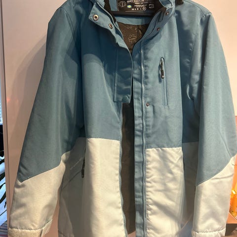 Hyväkuntoinen, ehjä ulkoilutakki kiinteällä hupulla hupussa kiristysnyörit edessä kokopitkä vetoketju sivuilla vetoketjutaskut.