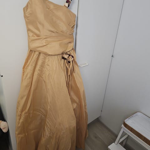 Flower by Charm’s Paris, koko M/L. Ollut yhden kerran tytöllä 6 luokan päättöjuhlissa. Kultainen, tyllitetty leninki ostettu uutena Tampereen in Stock liikkeestä.
