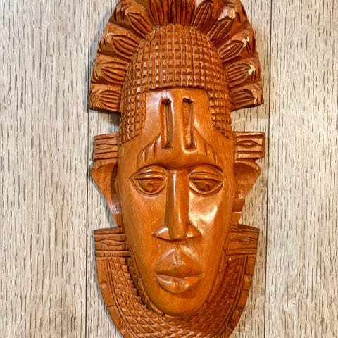 Tummasta jalopuusta veistetty naamataulu, alkuperä tuntematon, luultavasti Afrikkalainen. Tälle woodoota henkivän, poppamiesten, vanhojen tietäjien ja -parantajien symboliikkaa ja mystiikkaa tulvivan koristeen voit sijoittaa omaan pyhään paikkaasi luomaan tunnelmaa. Askartelijat voivat taakse sijoittaa vaikka hennon valon niin tunnelma muuttuu entisestään, varsinkin kun nyt syksyn illat pimenevät. Vain oma mielikuvituksesi on takana!