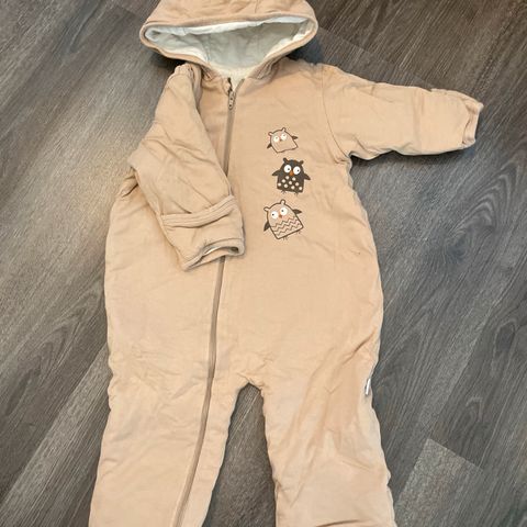Myydään hyväkuntoinen, vaaleanruskea, pöllökuvioinen Tutta topattu vanuhaalari. Koko 70 cm. Hupullinen haalari puuvillaa. Hihan- ja lahkeensuut saa käännettyä umpinaisiksi. Kissatalous.