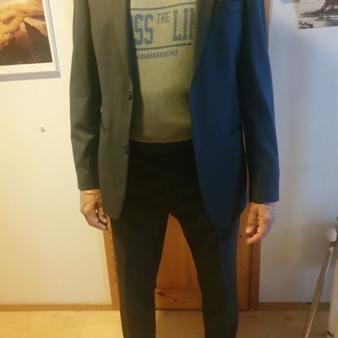 Koko:Bleiseri 50/34, housut 50/34.