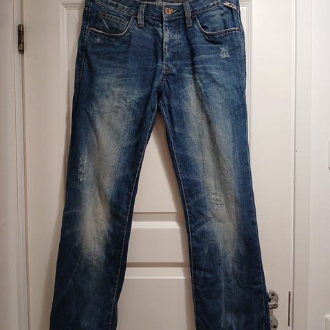 Muutamia kertoja pidetyt miesten mustat farkut 31/30".
