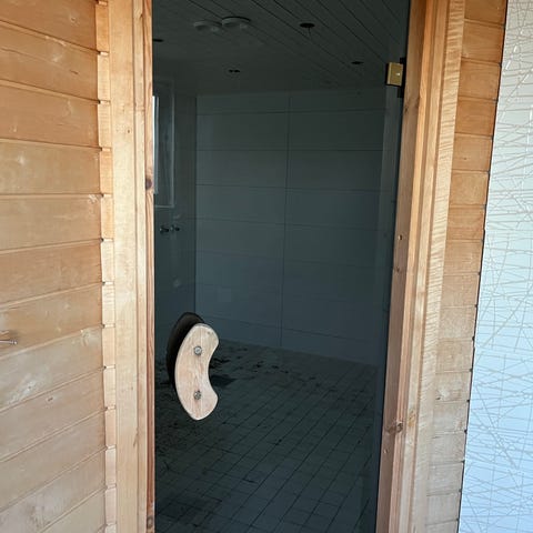 Käyttämätön, mutta jonkin aikaa kaapissa säilytetty ovikoriste on noin 9x15cm kokoinen. Ovikoriste saunan oveen koriste käsityötä käsityöt