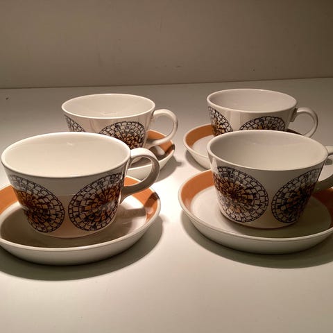 Kaksi vintage kahvikuppia, ei tasseja. Suunnittelija Esteri Tomula, valmistettu 1950-60-luvulla. Kupin korkeus 6,5 cm ja halkaisija 7 cm. Käytetyt, mutta täysin ehjät ja siistit. Väri vihertävä.