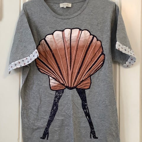 Vaaleanroosa t-paita, jossa kohopainatus DOT.