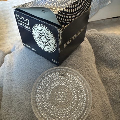 Kastehelmi lasinaluset 5 kpl. Kaikki täysin ehjiä. Vanhaa tuotantoa, kaikissa Arabia Wärtsilä- tarra. Hinta kaikille viidelle yhteensä 40€.