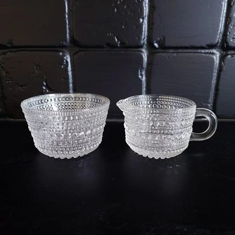 Maitokannu ja jalallinen sokerikko yhteensä 10e.
