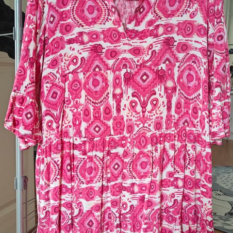 Myydään LINDEXin tunika/mekko. Musta-harmaa/hopea-valkoinen kuvio. Takana ylhäällä napit.