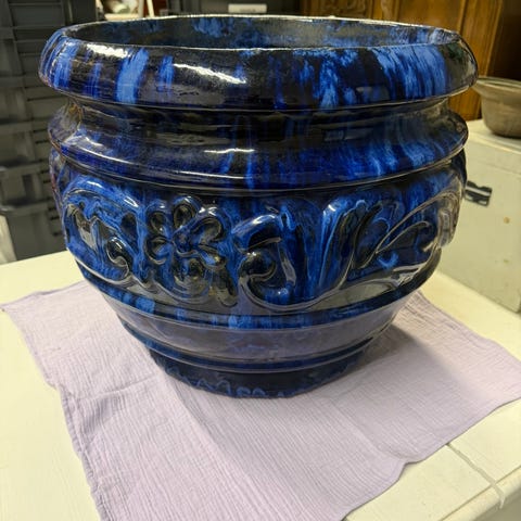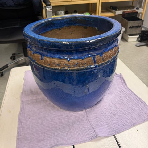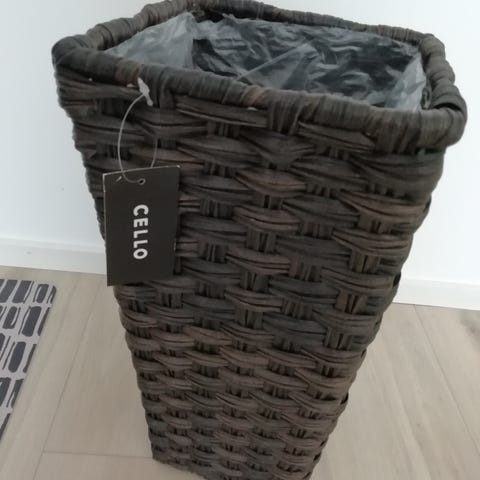 Musta/ruskea ruukku, kesti pakkasetkin. Reikä pohjassa, ulkoruukku ylimääräisenä.