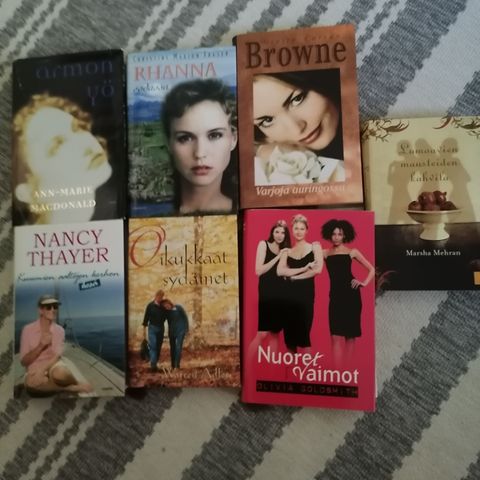 Kirjat luettu 1-2 kerran läpi, kaikki hyväkuntoisia, hinta 2e/kpl ja mahdolliset posti-ja diilikulut. Kirjat sisätiloissa, ei mitään hajua!