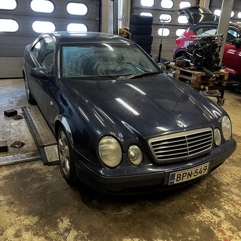 Myydään osia MB W208 200 Kompressor -00 mallista. Moottori vaihteisto ja perä myyty. Puhelin 0400-777656.