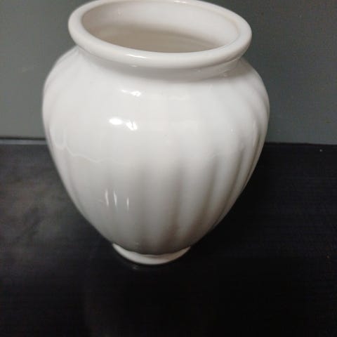 Soikea siisti maljakko, malli on soikea. Korkeus on 15cm ja halkaisija on 19cm.