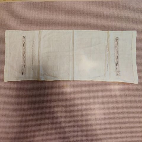 Puuvillalangasta kangaspuilla itsekudottu kaitaliina. Käyttämätön. Liinan mitat 85 x 36 cm. Hp. 10 e + postikulut.