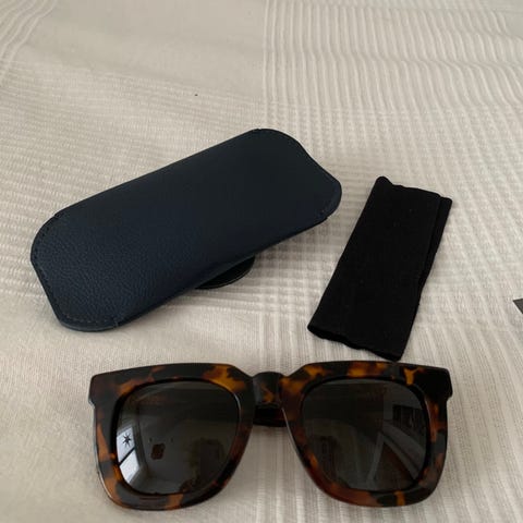 Myydään vähän käytetyt kuvan aurinkolasit, linsseissä ei naarmuja