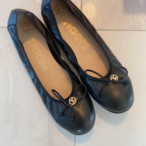 Myydään naisten naisten nahkaiset Wondersin ballerinat. Kengät ovat täysin uudet ja niissä on hintalappu.