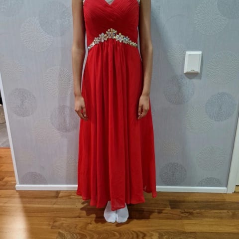 Pienikokoinen naisten satiininen vanhojen tanssi / juhlamekko. Kaunis himmeä kiilto. Tehty mittojen mukaan , koko arviolta 34 / XS. Yhden kerran käytetty.