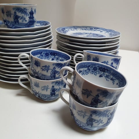 10 kpl kupit, aluslautaset, kakkulautaset sekä kahvikannu ja tarjoiluvati (nouto & käteismaksu)