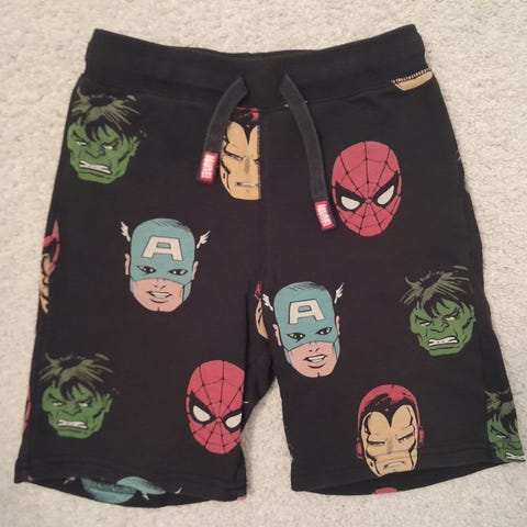 Spiderman MARVEL ja M&S. Lisäksi myös tummansiniset H&M trikoohousut 134/140 Kohtalainen käytetty kunto.