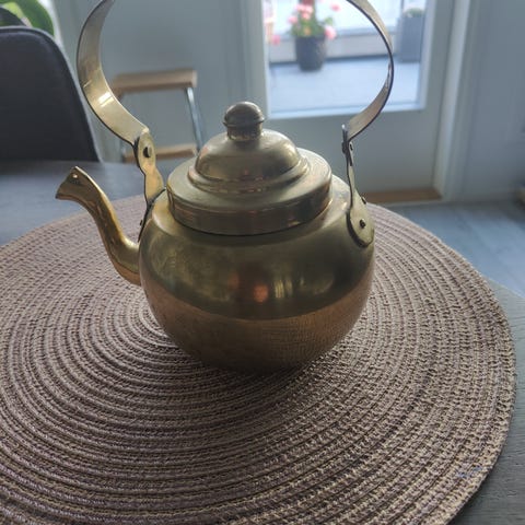 Messinkinen pannunalusta, messinkiesine, vintage, antiikki