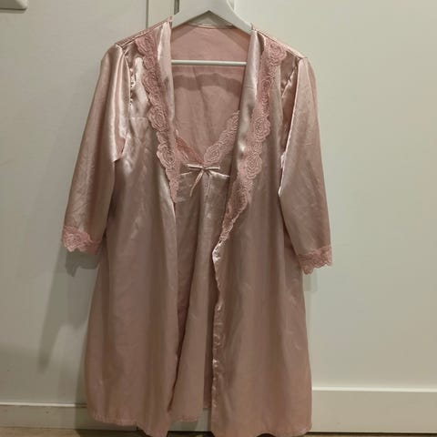 Vähän käytetty yöpuku koko L. Silti koristekangas päässyt vähän irtoamaan kainalon kohdalta (kuva3). Muuten ehjä ja siisti.