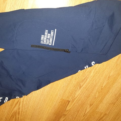 Joustaa, ei näy läpi. Paksumpaa kangasta, korkea vyötärö