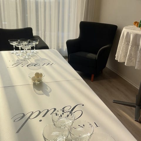 Vuokraame myös astioita, pöytäliinoja, pöytiä,tuolejaja, 3 m x 3 m telttoja.
