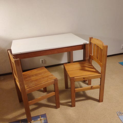 - pöytä ja penkit