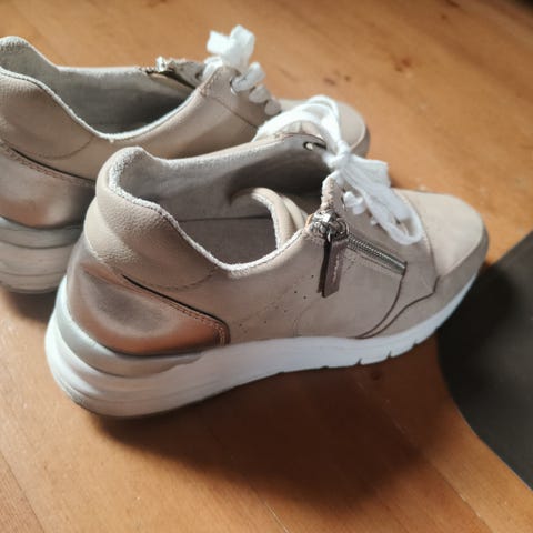 Paketista vedetyt, liian isoiksi todetut tennarit uudelle pitäjälle.