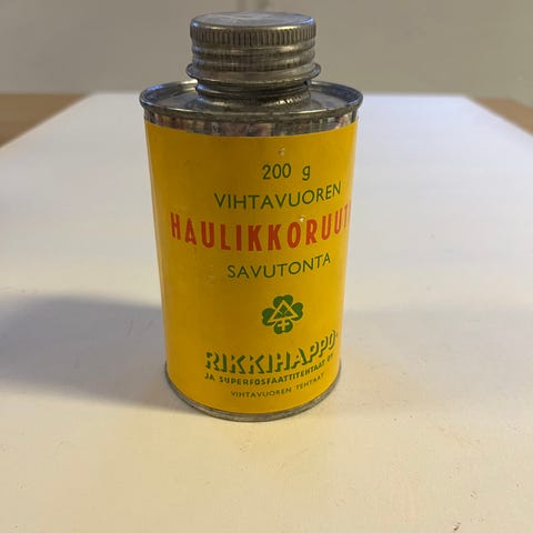 Harvinainen 1800-1900-lukujen vaihteen tienoilta oleva rautapeltinen ruutipurkki. Etiketti tummunut, mutta ikäisekseen kohtalaisessa kunnossa. Korkeus 20 cm. Leveys 11 cm ja paksuus n. 4,5 cm. Postituskulut lisätään.