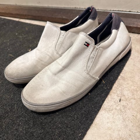 Tommy Hilfiger -merkkiset tennarit koko 41. Yhdellä pojalla parempina kenkinä käytössä olleet. Vähän tietysti jo tummentumaa, mutta muutoin hyväkuntoiset.