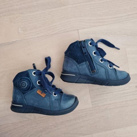 Kivassa kunnossa olevat laadukkaat nahkaiset Clarksin lenkkarit seuraavalle pienelle. Koko 20,5. Lesti joustaa hyvin. Pohjallisen mitta mittanauhalla 13,5cm. Pohjallisissa liimapintainen pohja, johon väkisillä jää pieniä hiekanjyviä kiinni, mutta parhaani yritin enimmät puhdistaa.