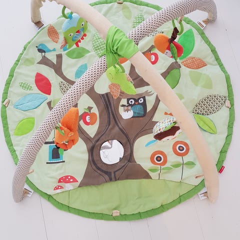Ihana yhdellä vauvalla käytössä ollut Skip hop merkkinen joutsen leikkimatto ja 9 Milestone viikko-/kuukausikorttia eli löytyy kortit yhdestä viikosta aina 12 kuukauteen asti. Meillä ollut käytössä oikeastaan vain näissä viikko-/kuukausikuvauksissa eli ei ole ollut leikkimattokäytössä jatkuvasti lattialla kun oli kaksi muutakin leikkimattoa/alustaa.. :) Käytännössä maton päällä on siis napattu yhteensä 15 kuvaa vauvasta ja muutoin ollut poissa lattialta. Eli kunto oikein hyvä edelleen, ei ole ollut tarvetta pesulle ja säilytetty omassa laatikossaan ja postitus onnistuu myös tässä laatikossa. On todella ihana leikkimatto/kuvausalusta, kortit saa laitettua pieneen muovitaskuun mikä on matossa kiinni. Joutsenen siiven saa nostettua ja se rapisee kivasti + nokassa on vinkulelu sisällä. Myös kaksi harmaata lenksua löytyy mihin saa kiinnittää omia leluja. Tosi kiva vaihtoehto perinteiselle leikkimatolle ja toimii samalla kivana kuvausalustana + valmiit kortitkin mukana! :)