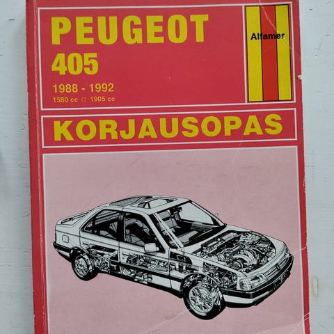 Korjausopas Peugeot 405 1988-1996. HP 8 € + pk/nouto Tampereelta, sopimuksen mukaan.