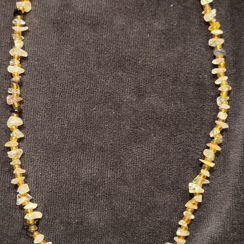 Korukivi kaulakoru ruskea ja valkoinen. Valmistettu korukivistä, sopii monenlaisiin asuihin ja tilaisuuksiin.
