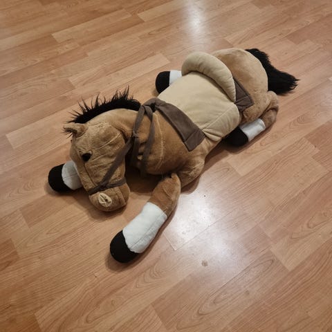 Kuvan iso, pehmohevonen, n.1m x1m. Katsoithan muutkin ilmoitukseni.