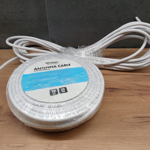 TV antennijohto 5 m, valkoinen. Ehjä, myyn tarpeettomana.