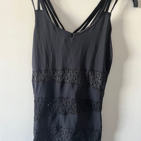Sininen Debbie Morgan -urheilutoppi, koko M. Integroitu rintaliiviosa.