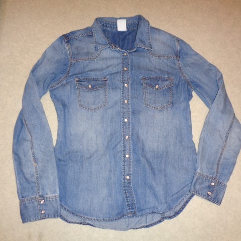 Sininen kulutettu hihaton ns farkkutoppi farkkupaita jossa kaulukset ja napit. Koko 40, taitaa olla pientä kokoa..