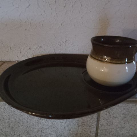 Keltaiset Kermansavi,tarjottimet ja mukit.2kpl 8e