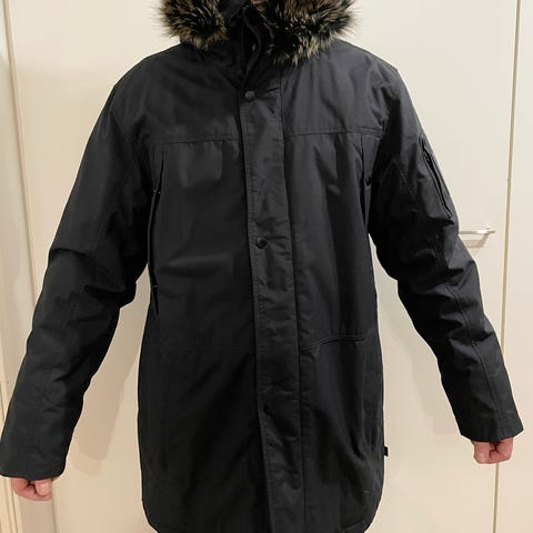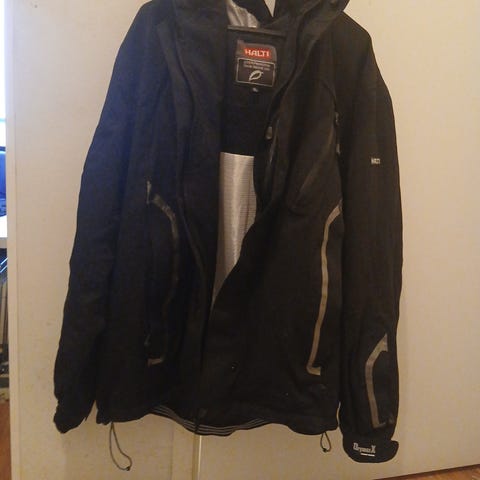 Käyttämättä jäänyt Harmaakuviollinen miesten Halti toppatakki. Takissa kauluksessa tekokarvareunus. Koko XL.