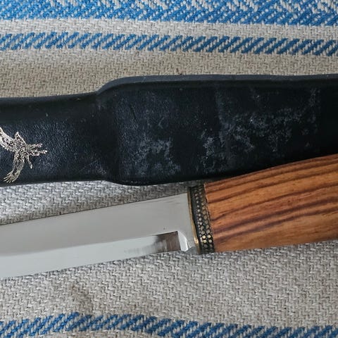 Haluaisin ostaa kuvan mukaisen Marttiinin tekemän pronssihelaisen pöllöpuukon ja puukkoon kuuluvan tupen.
