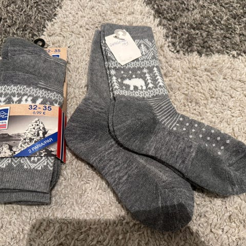 Kahdet villasukat ja 3 paria sukkia koko 31/33