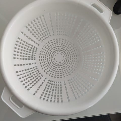 Myydään kuvien mukainen lävikkö pastan keitinveden kaatamiseen. Tuli ostettua kaksi ja pärjään hyvin yhdellä 🙂