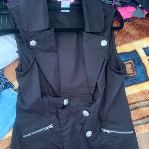 Siisti ja hyväkuntoinen pidempi toppi. Väritys musta ja harmaa.