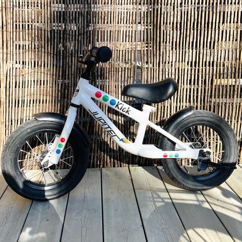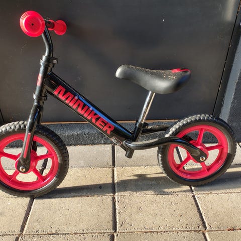 Toimiva, kestävä, kevyt First Bike potkupyörä tasapainon ja pyöräilyn opetteluun. Paljon käytetty, mutta kunto edelleen hyvä, hieman punainen väri haalistunut alkuperäisestä. Sopii noin 2–4 -vuotiaille, säädettävä satulan korkeus 30,5 cm - 44,5 cm.