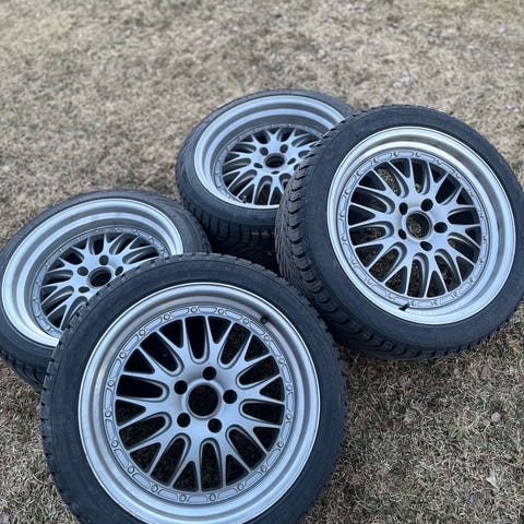 Myydään siistit vanteet muutama satakilometriä ajetuilla kesärenkailla.