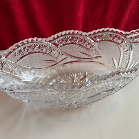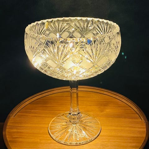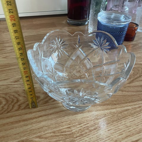 Suuri 24 % kristallikulho jalalla, korkeus 30 cm ja halkaisija 25 cm