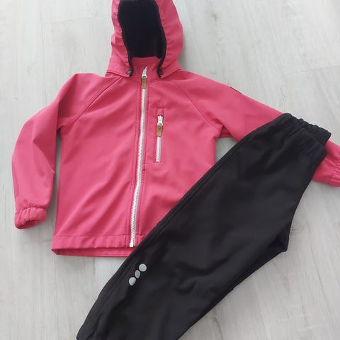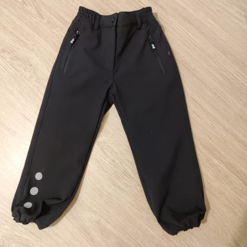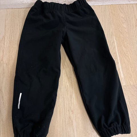 Hyväkuntoiset mustat Reima softshellhousut koossa 104cm. Kapea malli.
