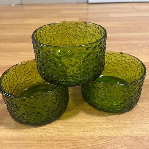 Täysin käyttämättömät ja vanhat Jesper jälkiruokakulhot alkuperäisessä pakkauksessaan.