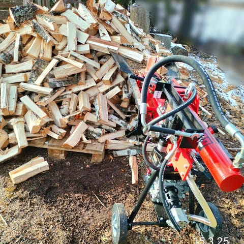 Tehokas halkaisukone 12 tonnin halkaisuvoimalla. 3 erilaista halkaisuterää.